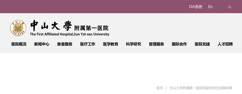 原标题:中山大学附属第一医院驾驶员岗位招聘启事