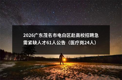声明:专注 2026广东茂名市电白区赴高校招聘急需紧缺人才61人公告(医疗岗24人) 相关岗位分析;专业指导面试技巧;保障就业成功概率。