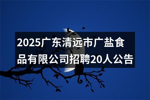 【2025广东清远市广盐食品有限公司招聘20人公告】相关岗位: