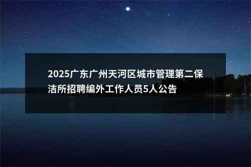 2025广东广州天河区城市管理第二保洁所招聘编外工作人员5人公告为进一步加强二所日常管理工作,结合第二保洁所工作的实际需求,现面