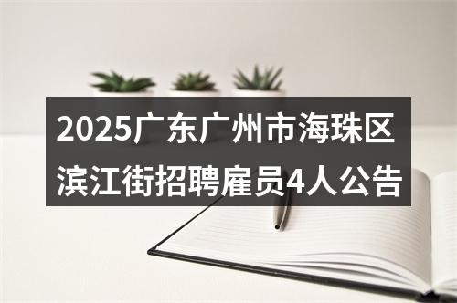 原标题:2025广东广州市海珠区滨江街招聘雇员4人公告
